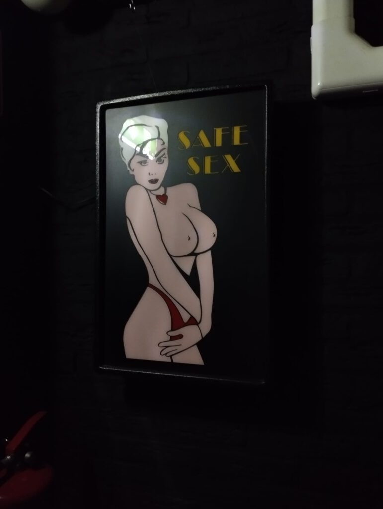 In general, Ertotheek’s facilities are well-maintained and easy to navigate. It is dated, which gives a very particular atmosphere. Although lube or condoms are not provided, tissues and trash cans are readily available. However, there is only one toilet, and it is not only located outside the cruising area but also locked. Customers must ask for the key at the cash desk, which requires people to go upstairs, altering the cruising experience. There are numerous signs warning customers not to pee in the trash buckets, which may be the reason behind the key policy. Still, considering that toilets are a basic service in a venue where people gather to have sex, we can only find locking a toilet patronising.